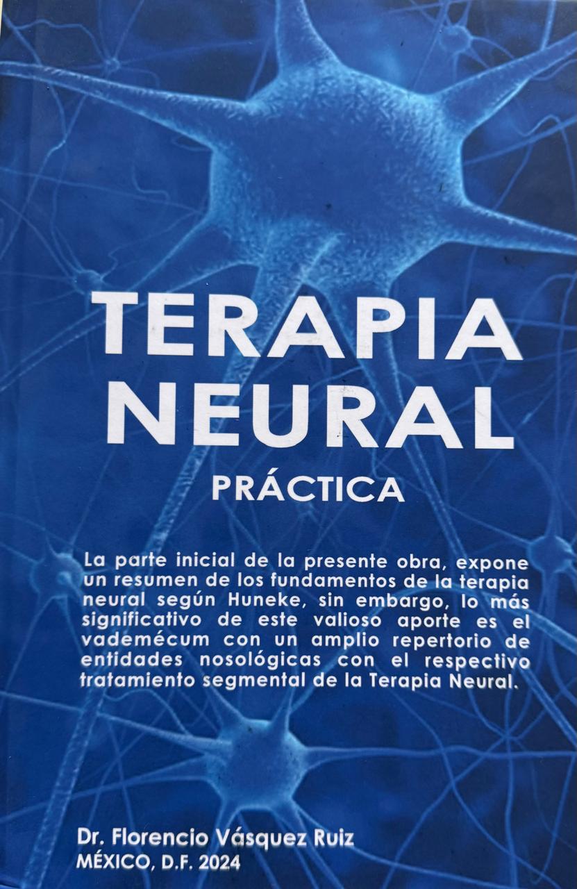El Dr. Florencio. Vásquez Ruiz, como Especialista en Cirugía General y Terapia Neural, en su obra TERAPIA NEURAL PRACTICA, la cual, es producto de 45 años de experiencia clínica, ha logrado avanzar en la terapia neural INTRAVENOSA, INTRA ARTERIAL Y TRONCAL, con excelentes resultados en numerosas patologías del cuerpo humano.